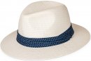 Fedora en paille pour homme avec ruban Couleurs : 6x motif bleu, 6x impression mouchetée bleue Tailles : 4x 57 cm réglage intérieur, 4x 59 cm réglage intérieur, 4x 61 cm réglage intérieur Tissu : 100 % papier Page du catalogue :
