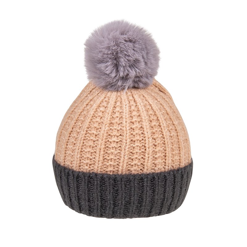 a1677- bonnet en maille très douce avec pompon en fausse fourrure, pour dame